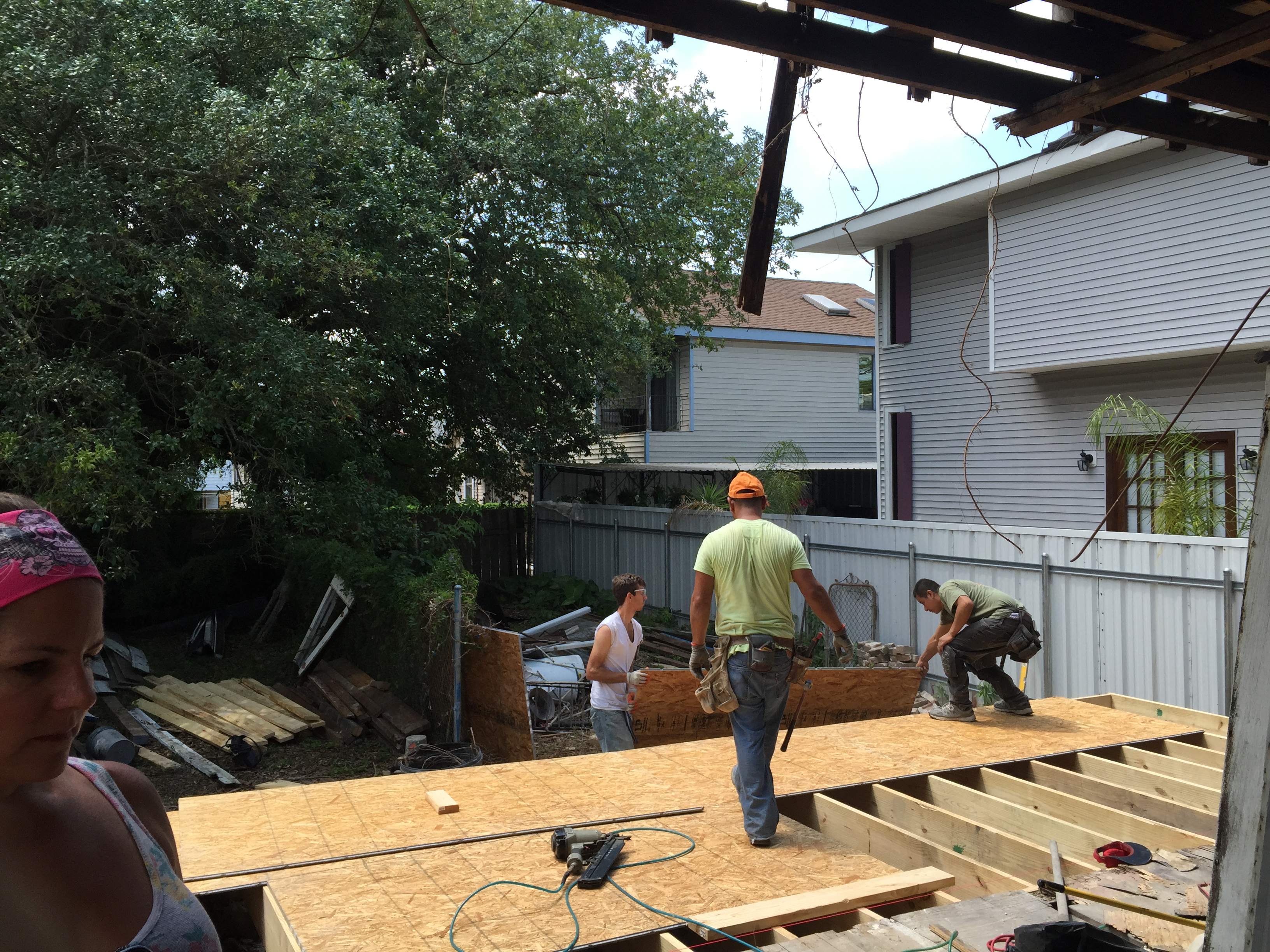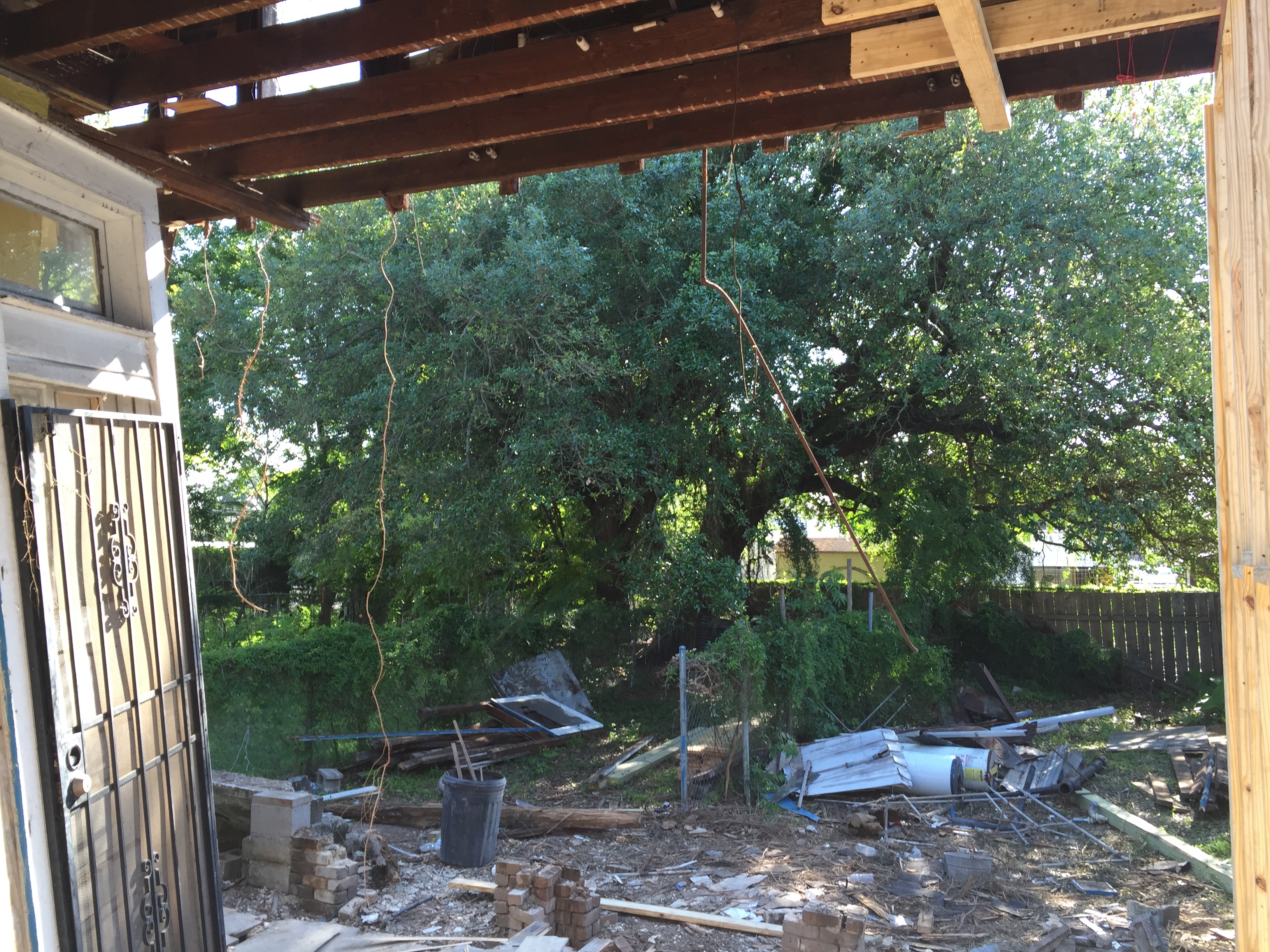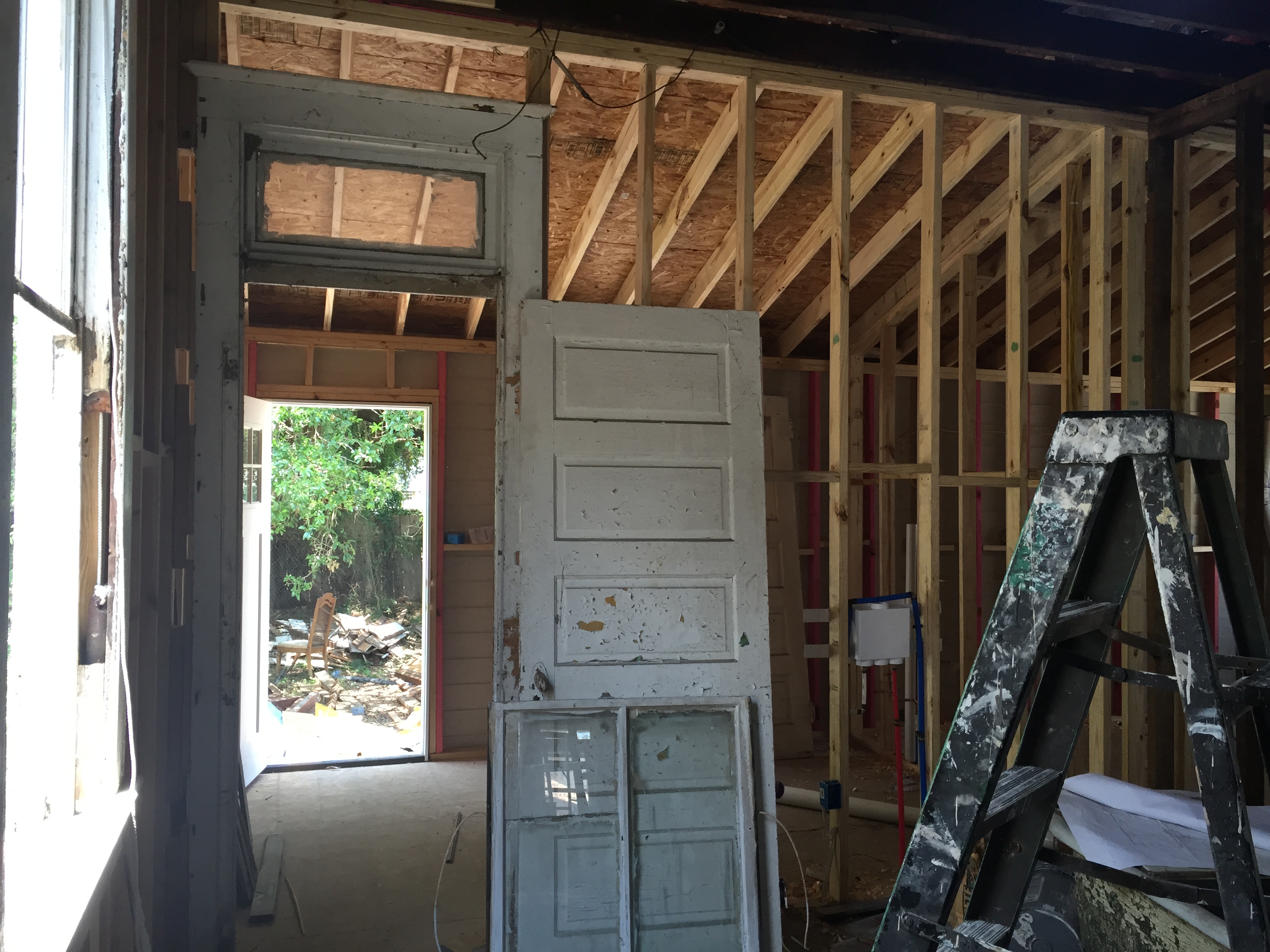 By · CommentsThey took the back of the house off! Yes, off! So now they are rebuilding a 10 foot section of the rear of the house. It was damaged by water and termites and, with the modifications we are doing to the interior in this area, they felt it was better to remove and replace.